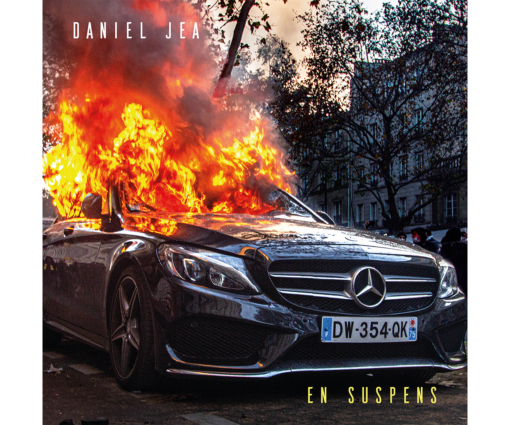 (Rires) Elle représente assez bien la situation actuelle de la société qui va mal, je trouve. Ce décalage entre le monde politique, le pouvoir, la richesse, et en face la population. Disons une grande partie de la population qui souffre. Cette voiture de luxe à laquelle on a mis le feu est assez cliché comme symbole mais il est bien là et très fort. J’étais d’ailleurs devant cette voiture quand elle brûlait, avec mon fils qui est le photographe qui l’a prise ! Et je précise, ce n’est ni la mienne ni moi qui y ai mis le feu (rires). C’était courant 2020 à Paris, pendant une manifestation contre la loi sécurité globale. Avec quelques débordements comme tu peux le constater, mais dans les deux camps comme d’habitude malheureusement !