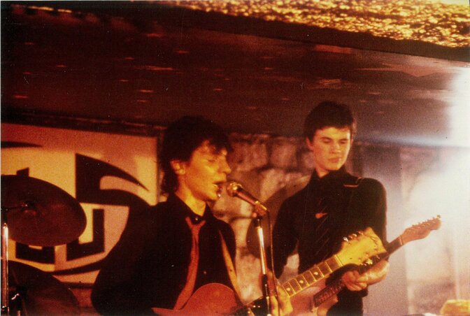 (Patrick Eudeline et Grégoire Garrigues sur scène avec Asphalt Jungle au Gibus en novembre 1979 - Photo Emmanuel Garrigues )