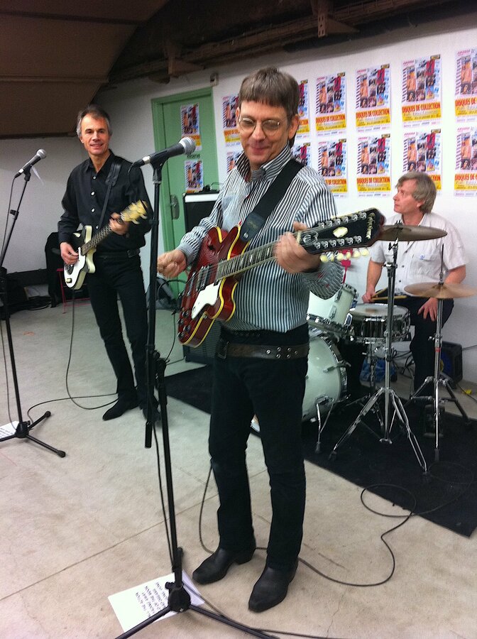 Ca a commencé en 2000 et ça existe toujours ! En 1975 il y a eu une réédition des Chaussettes Noires et tout de suite j’ai compris deux choses : l’importance pour les ainés de ce groupe et le son qui était vraiment super. Quand tu écoutes « Be bop a Lula » ça sonne vraiment ! J’ai rencontré en 2000 un ami bassiste, Paolo Coccina qui me dit qu’il a un copain qui veut faire un groupe de cover des Chaussettes Noires et il m’a demandé si je voulais le faire avec eux. J’étais très occupé, j’ai essayé de trouver quelqu’un et comme je n’ai trouvé personne je m’y suis collé. Le répertoire est vraiment génial et franchement c’était un plaisir de jouer ces reprises. On a fait un premier concert à Beauvais en plein air, c’était bien il y avait du monde. On a fait un deuxième concert en février 2002 au « Petit Journal Montparnasse » et là c’était bourré à craquer. Des fans des Chaussettes Noires étaient venus un peu en curieux pour savoir si on allait réussir à retransmettre l’esprit du groupe. Ça a été un succès ! Un producteur nous a proposé de faire un album. On a fait cet album de reprises en respectant à la lettre les Chaussettes. Suite à ce premier disque on a décidé de commencer à composer des titres originaux et dans l’esprit, et ça pour les quatre albums suivants.